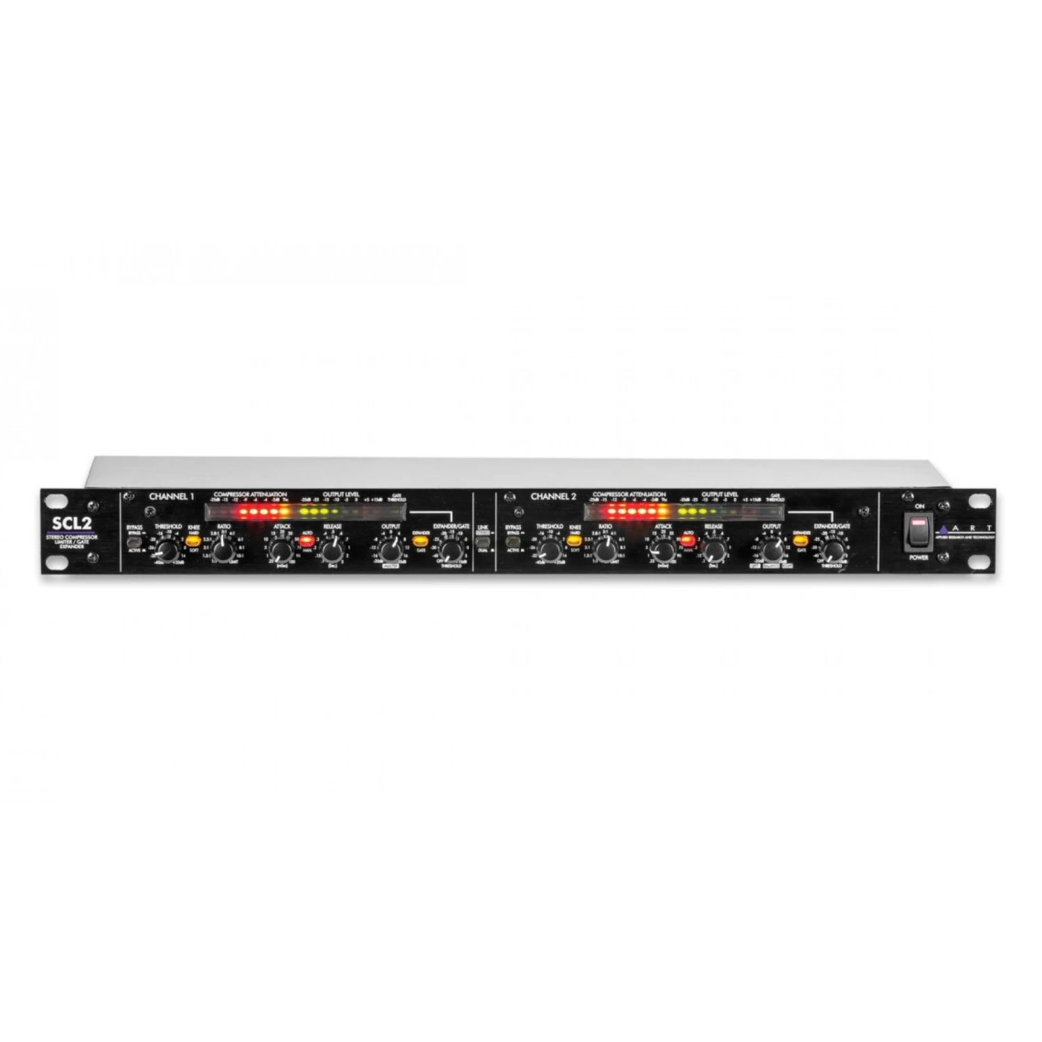 The Attack and Release functions allow the user to set the general operating range and then automatically adapt to the audio being processed. A full auto mode is also available. The ultra-precise LED meters while two LED meters clearly display the gain reduction for each channel.