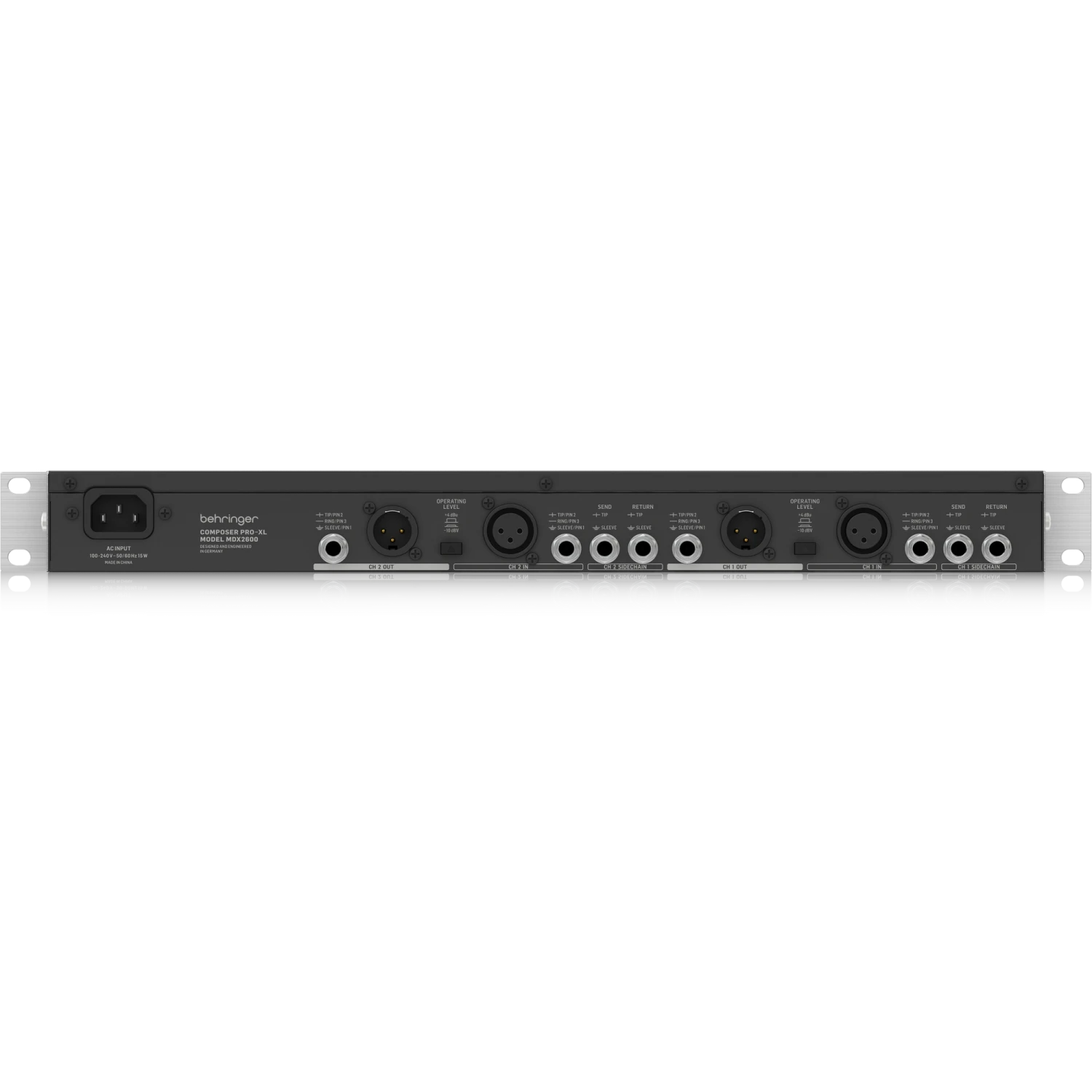 The MDX2600 features amazingly-accurate 12-segment LED meters for In/Out Level and Gain Reduction, switchable +4 dBu or -10 dBV operating level, Side Chain I/O, and servo-balanced XLR and 1/4″ Inputs and Outputs. Best of all, the COMPOSER PRO-XL MDX2600 takes up just a single rackspace.