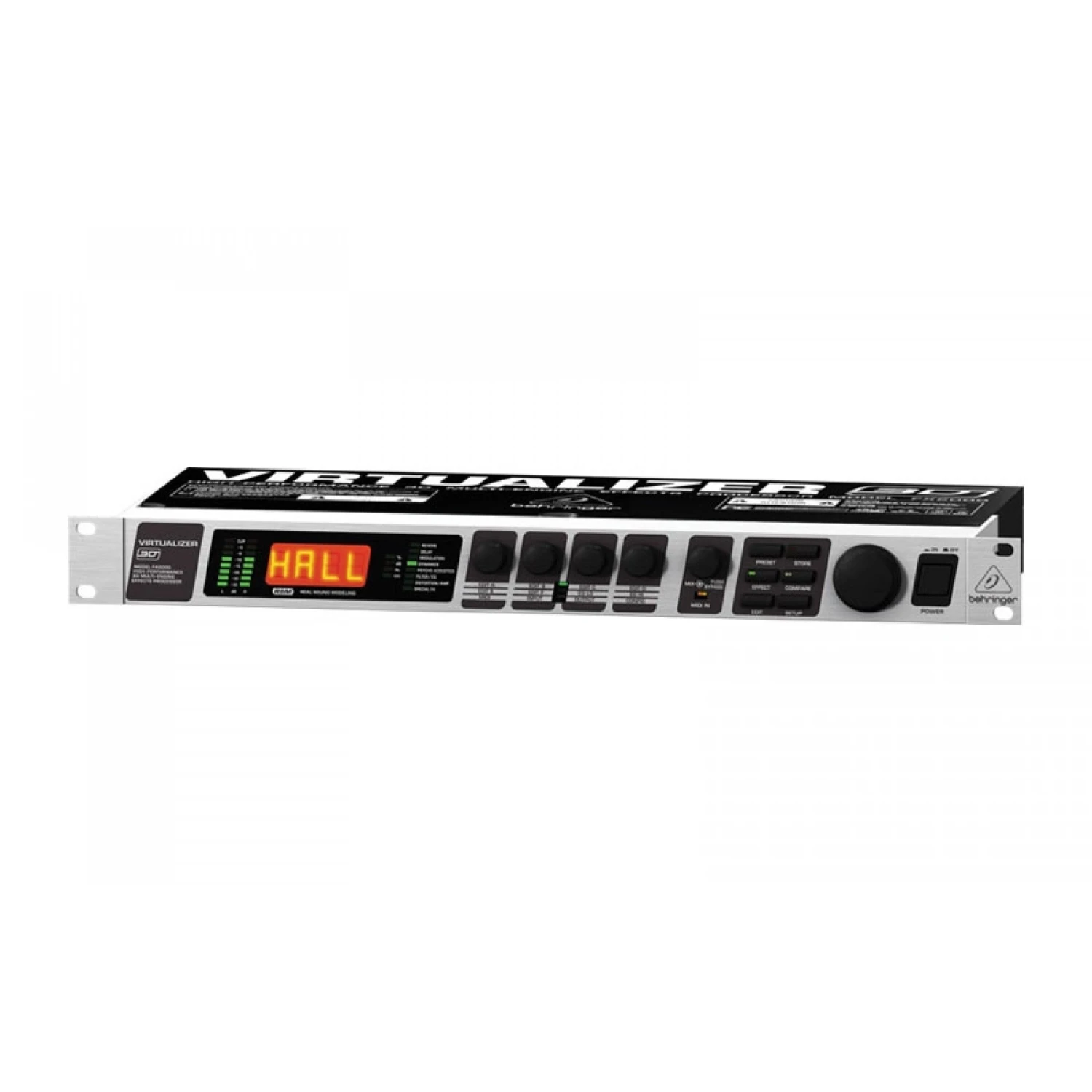 Get even more mind-expanding power for your keyboard, bass, guitar or vocals with the VIRTUALIZER 3D FX2000 Effects Processor. This amazing rack unit has 71 incredible new algorithms, including true studio-grade stereo and 3D effects that will add a head-spinning new dimension to your sound, both live and in the studio. The FX2000 employs BEHRINGER RSM (Real Sound Modeling) technology to simulate acoustic environments with stunning accuracy. Effects options include powerful modulation, amp simulation, distortion and special effects, as well as effective dynamic and psychoacoustics processing. Performance is further enhanced through user-addressable high and low EQ and wave-adaptive VIRTUAL ROOM reverb algorithms.
