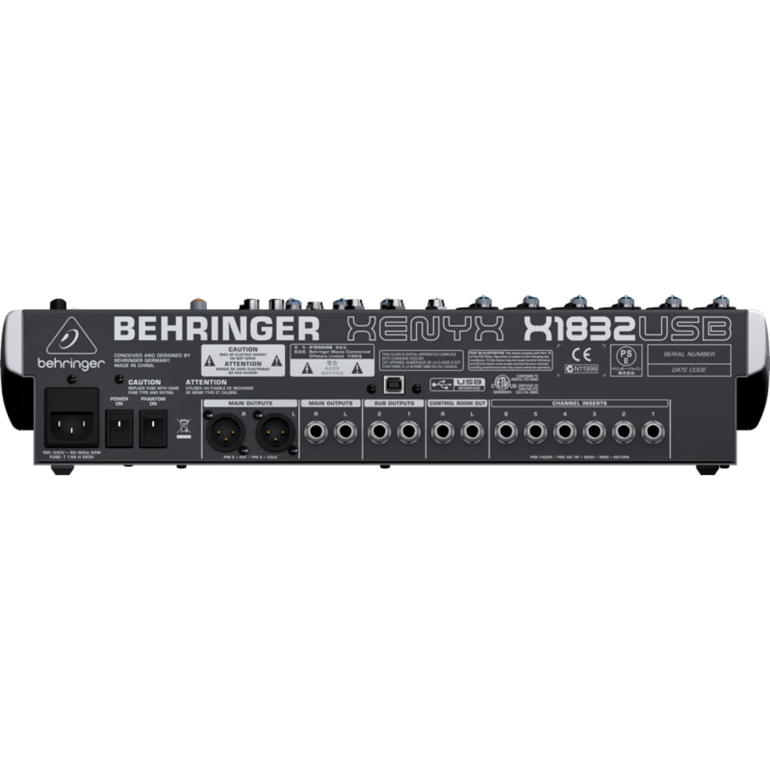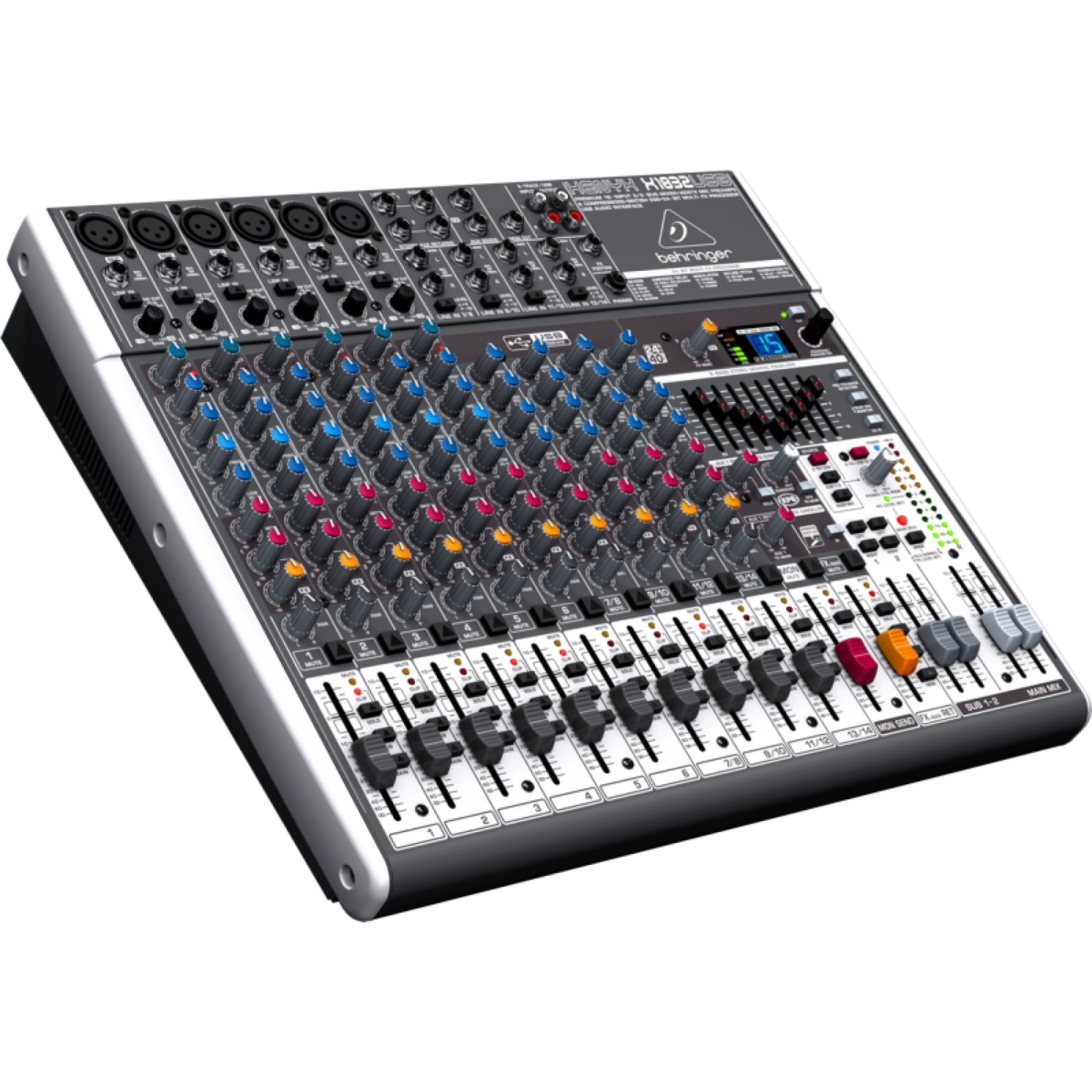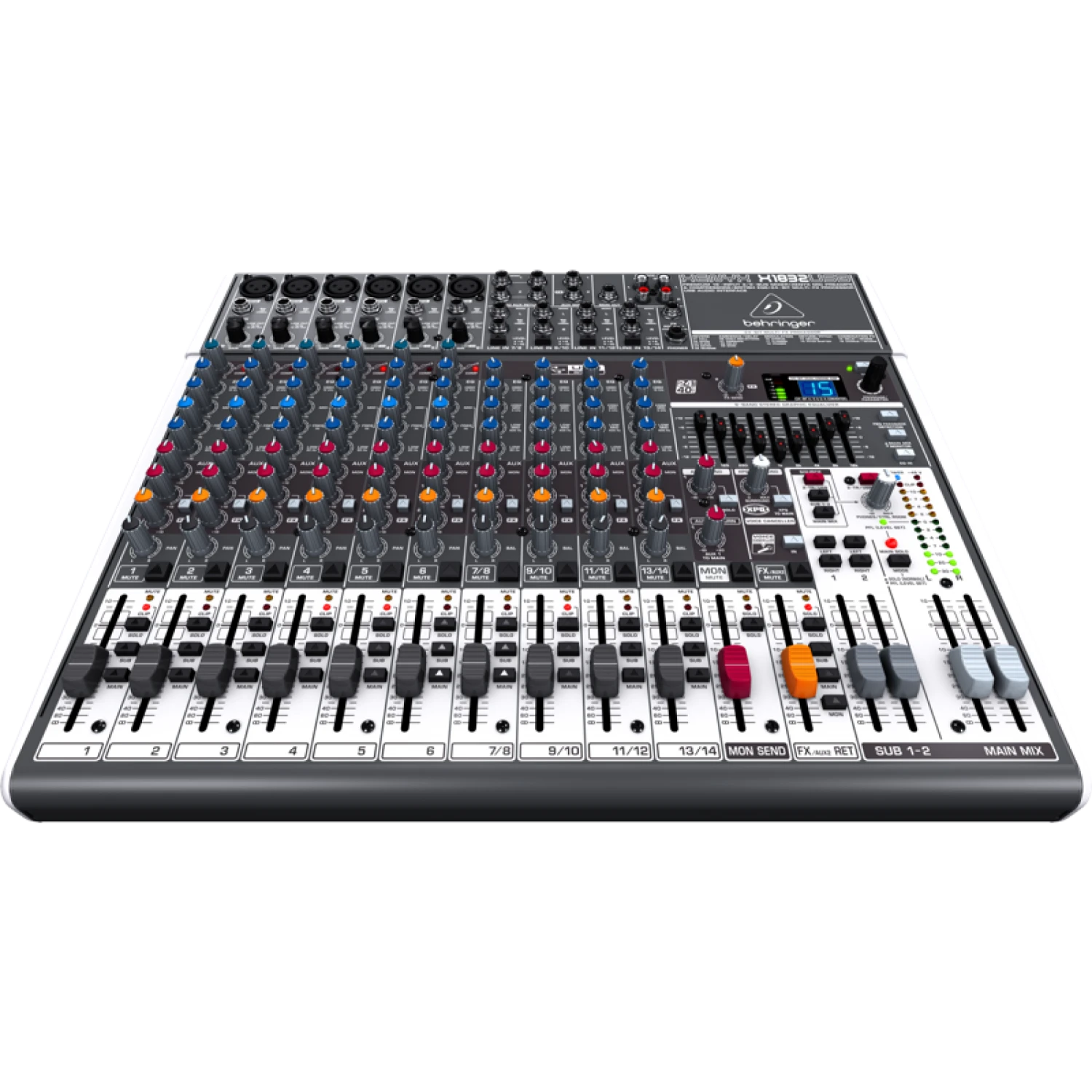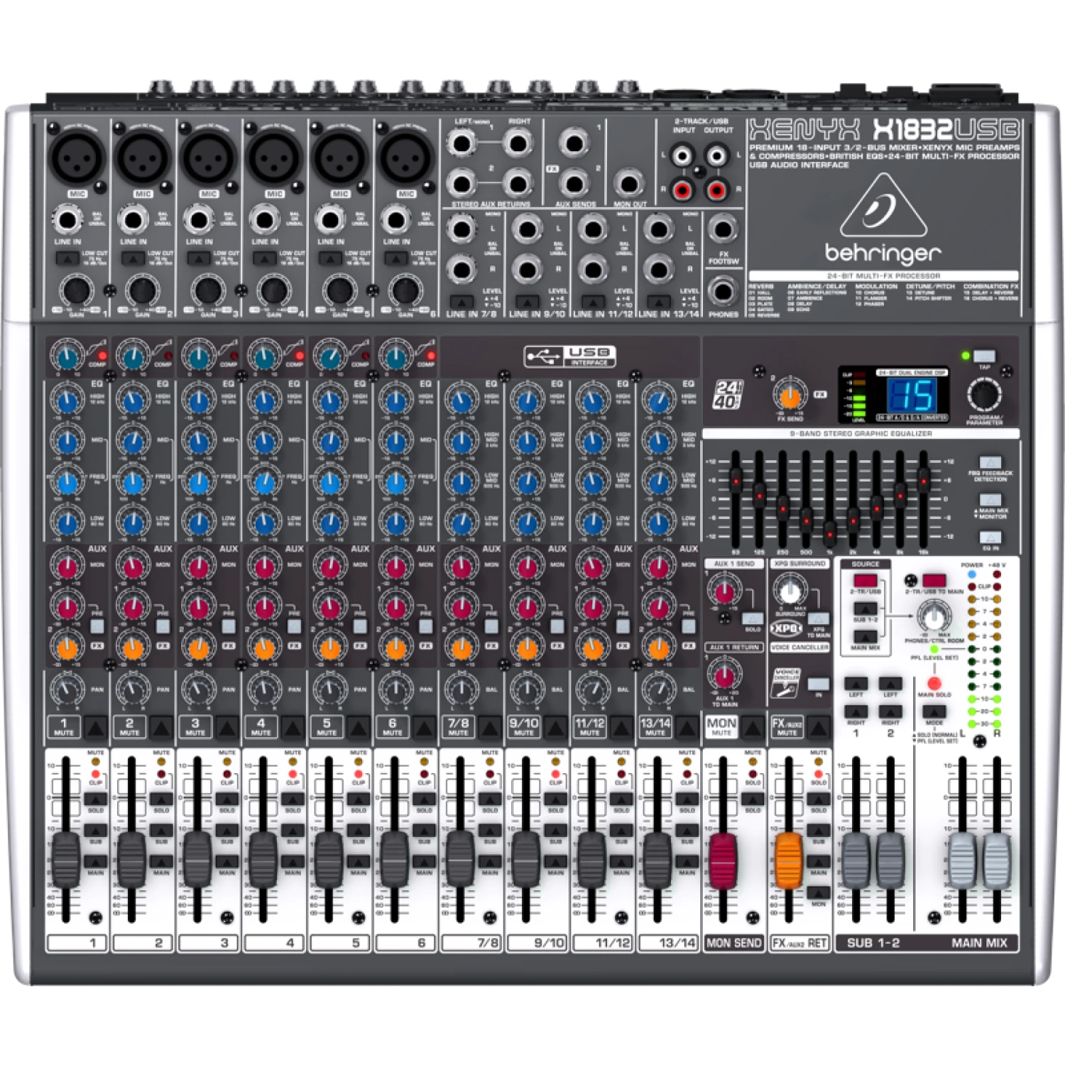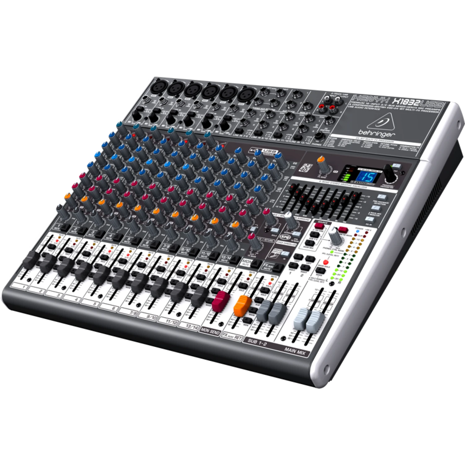 Building on the feature set of the X1622USB, the X1832USB comes with two additional mic strips (including channel inserts), for a total of six XENYX mic preamps. The onboard stereo 9-band graphic equalizer, which can be assigned to the main or monitor buses, provides superb system EQ and works in conjunction with the FBQ feedback detection circuitry to eliminate annoying mic squeals. Other features include full-sized faders for MON and FX SENDs, along with our proprietary XPQ 3D stereo surround effect and Voice Canceller. The ultra-versatile X1832USB also has an additional Aux Send (switchable pre/post), for a total of three, and two assignable subgroups.