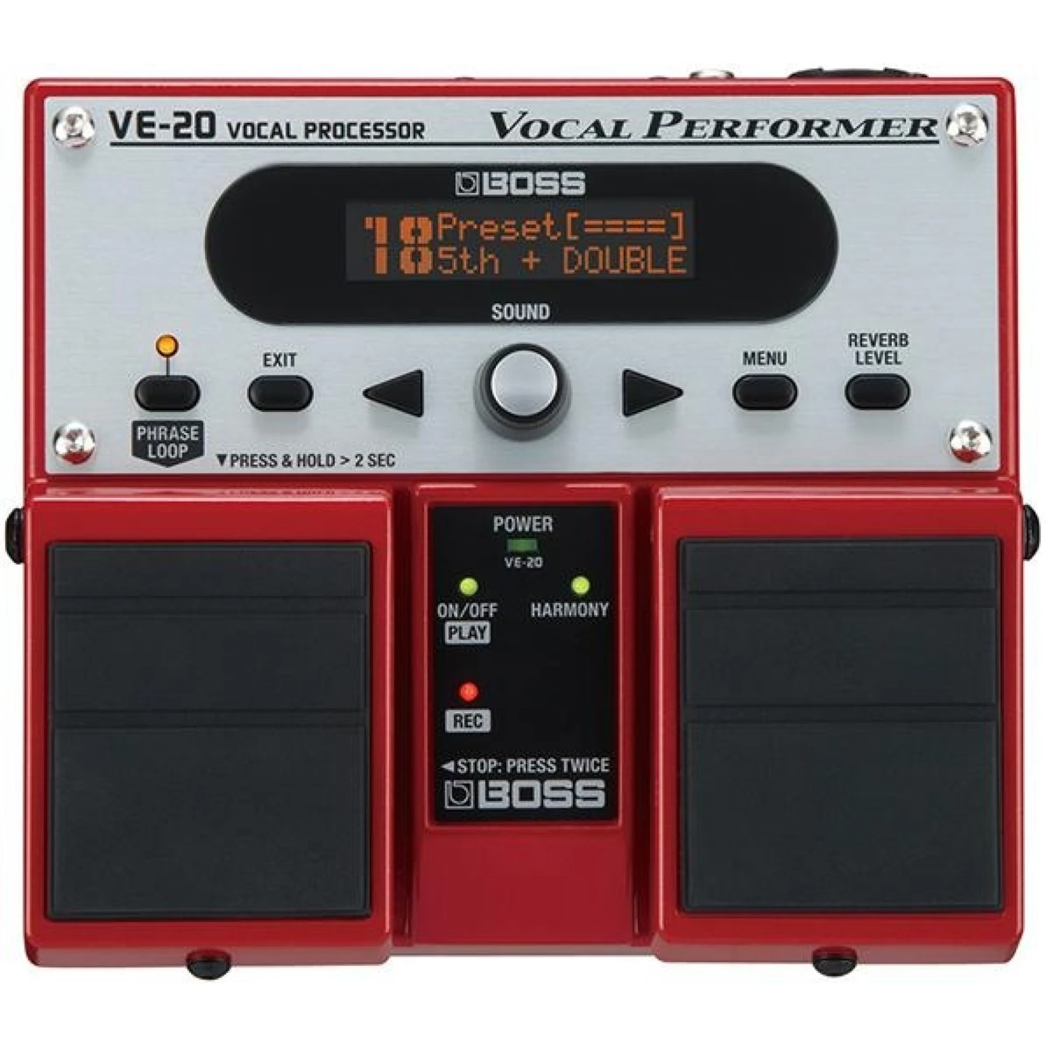 Who says stompboxes are just for guitarists? The new, easy-to-use VE-20 has been designed from the ground up for singers, featuring some of the finest vocal-effects technology on the market. With the click of a footswitch, you can instantly add lush vocal layers and harmonies to your singing, add realtime pitch-correction, and you can show your creative side with special effects such as Distortion, Radio, and Strobe. You can even create loops and layers in real time with the onboard Phrase Looper. Perform anywhere with the VE-20 since it runs on AC or battery power.