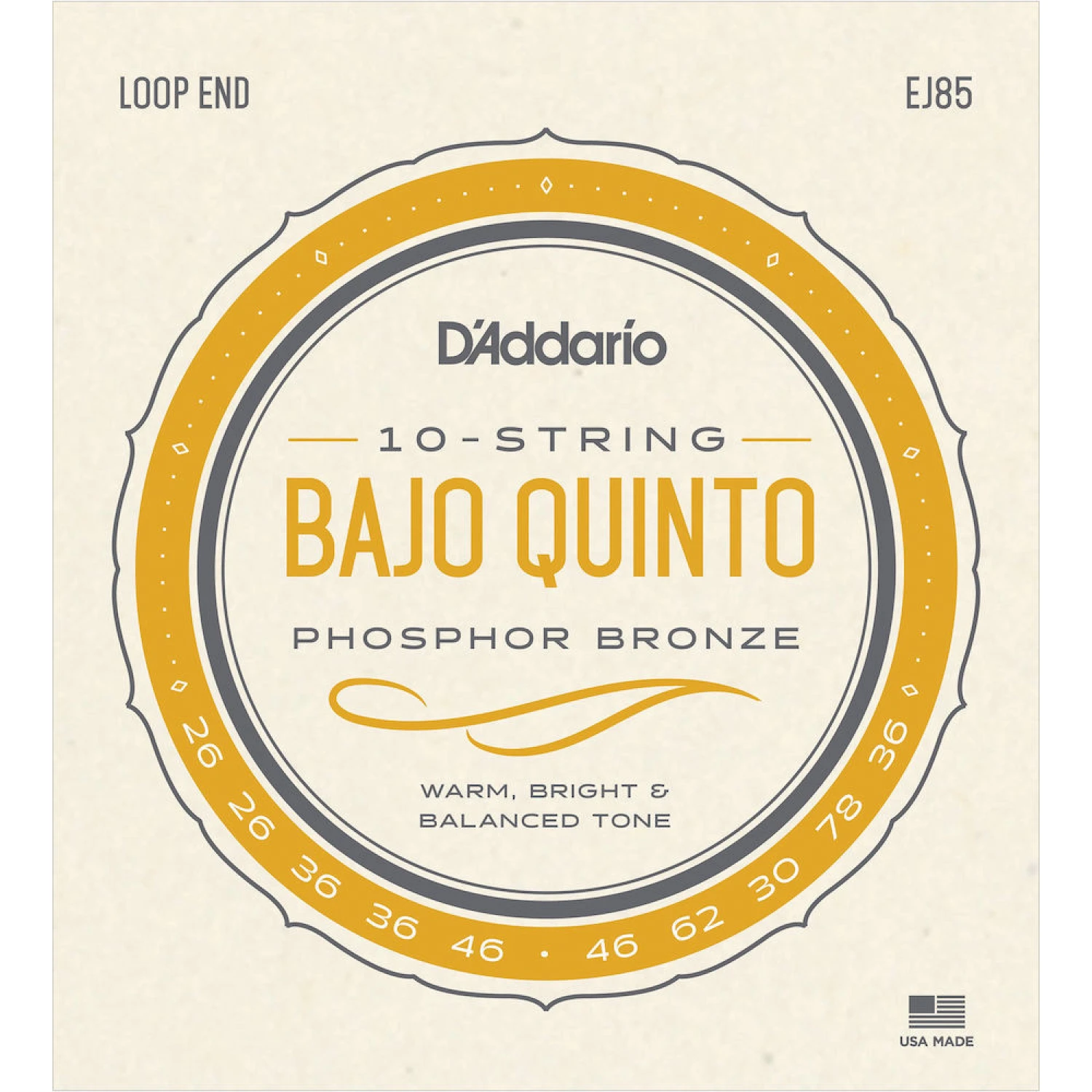 – Loop end strings designed specifically for the Bajo Quinto