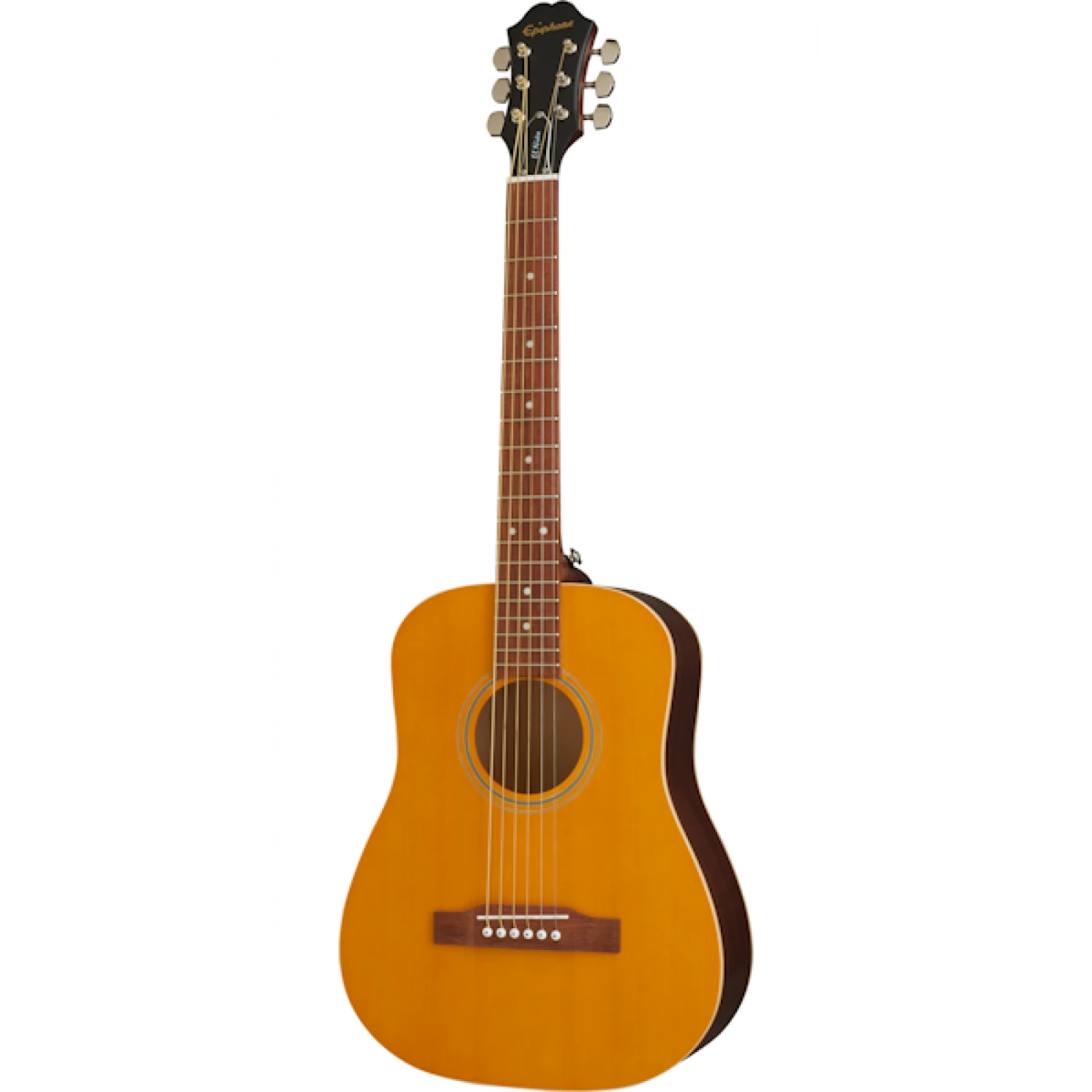 Take your Epiphone anywhere! . The El Niño Travel Acoustic Outfit offers new players and travelers timeless Epiphone tone in a size that can go anywhere! Featuring a Select Spruce Top, Mahogany neck, Epiphone hardware, and a Granadillo bridge. Gigbag included!