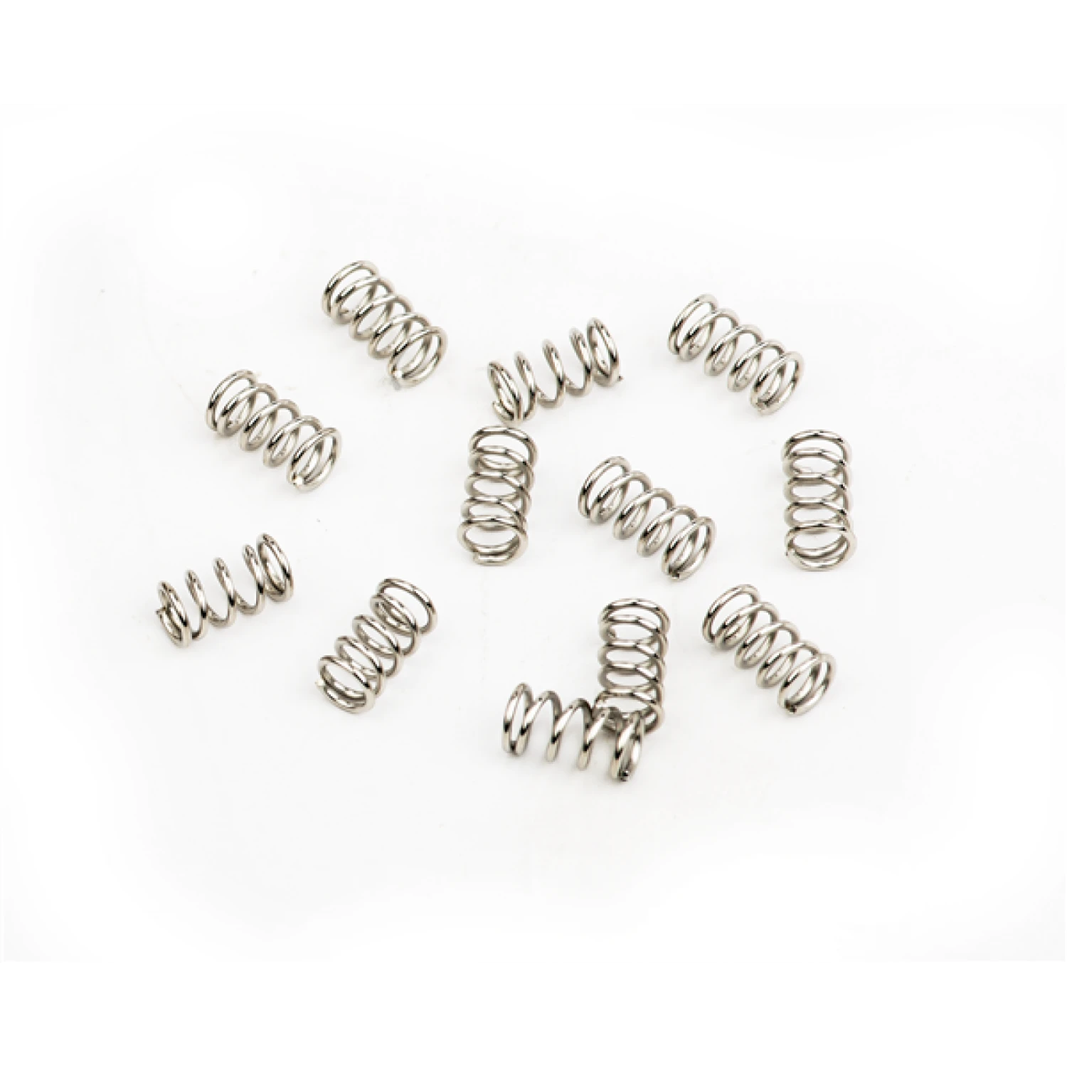 Package of twelve 5/16″ nickel-plated steel intonation springs used in many vintage-style tremolo bridge assemblies.