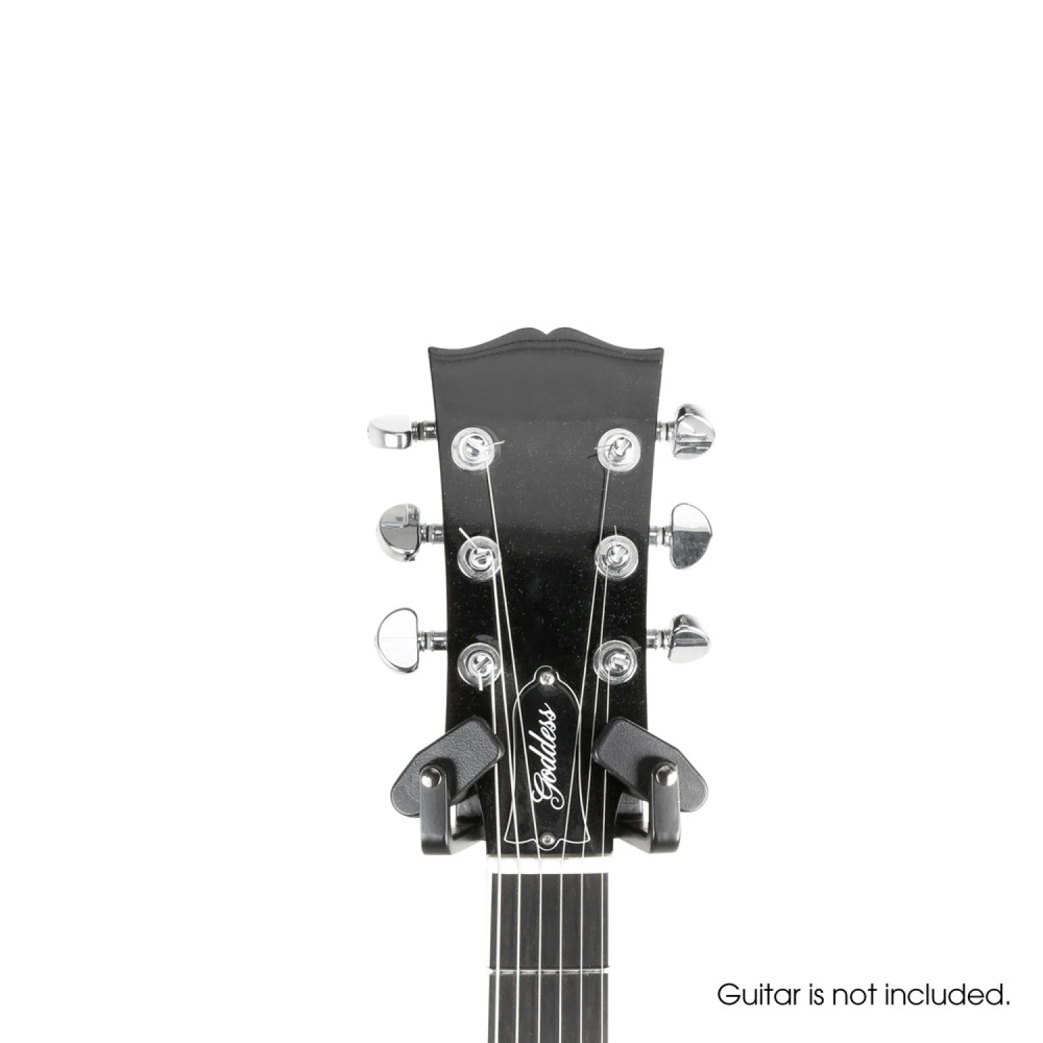 The GS 01 NHB is a stable and elegant guitar stand for acoustic, electric and bass guitars. It can be adjusted in height up to 108 cm and folds up. The clever “neck hug” mechanism secures the guitar automatically in the neck fork from slipping and opens automatically when the instrument is lifted from the tripod. The soft padding protects the guitar from scratches and does not damage the paint.