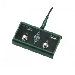The Profiler Switch allows to control two switching functions remotely. The switching function are assigned globally. Connected to the Profiler directly, it could be used to for example step up and down through your sound pool. As an extension of the Profiler Remote it could be configured to toggle the speed of a Rotary Speaker between slow and fast plus starting the Looper beside other options. A short TRS cable to connect the Profiler Switch to the Profiler Remote is included.