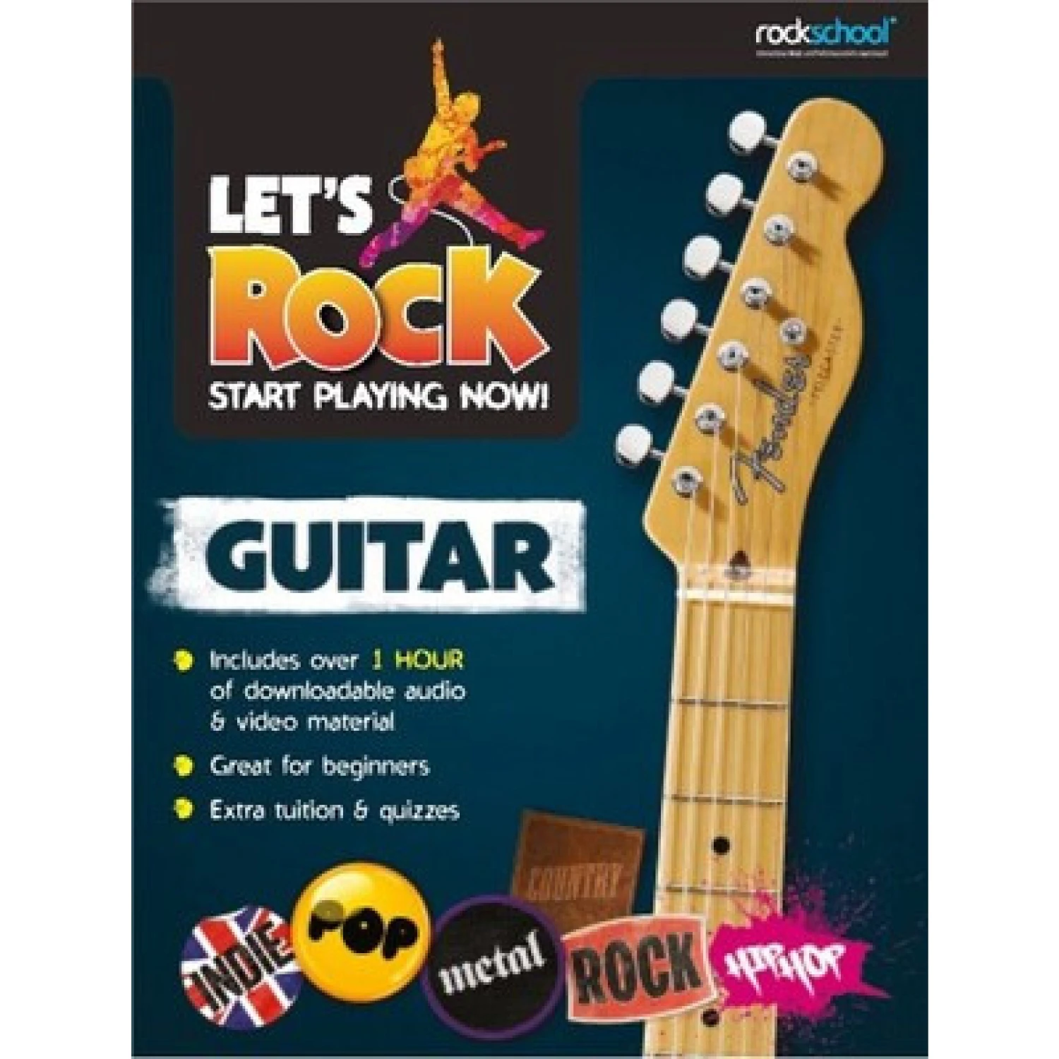 Let’s Rock Guitar will give you everything you need to know to get started playing the Guitar, learn the essentials so you can get seriously good, seriously fast. With over 100 audio tracks, quick guide videos and 12 lessons in 6 different styles, you’ll be playing before you know it. Book Features: Over 1 hour of downloadable video and audio content. Instrument quick guide – what everything’s called, how it works and everything in-between! How to read music – learn how to read music quickly and simply. 12x lessons in 6 different styles – each lesson includes audio and video tuition. 6 pieces, 6 varying styles – put your skills to the test with 6 kick ass pieces. Play – Rock, Pop, Indie, Metal, Hip Hop and Country. 120 audio tracks – supporting audio for every musical example and piece. Video lessons – on getting started and key techniques, Quiz – put your skills to the test with the interactive quizzes. Dropcard – instantly download the accompanying audio and video hassle free! What you’ll learn: The basics of music notation & your instrument. Rock, Pop, Metal, Country, Indie and Hip Hop. Simple chords, melodies and riffs. Watch the promotional video here: Let’s Rock is perfect for both students and teachers. Teachers can use each book as self explanatory ‘grab and go’ resources with ‘day one’ guitarists. Similarly, first time guitarists can pick up the book and instantly get going, even before they’ve had their first lesson.