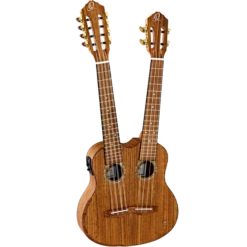 Stairway to heaven is a song legendary played by musicians all over the world on any imaginable stringed instrument. Now you are able to play it just like Jimmy Page on a double neck – ukulele style! Our Hydra model features a 8 string and 4 string mahogany neck set in a tenor sized Ovangkol body with open pore finish. In addition to that this unique instrument comes with ORTEGA CUSTOM BUILT ELECTRONICS with a three way mini toggle to switch between the necks or to activate together. A rectangle deluxe gig bag is included.