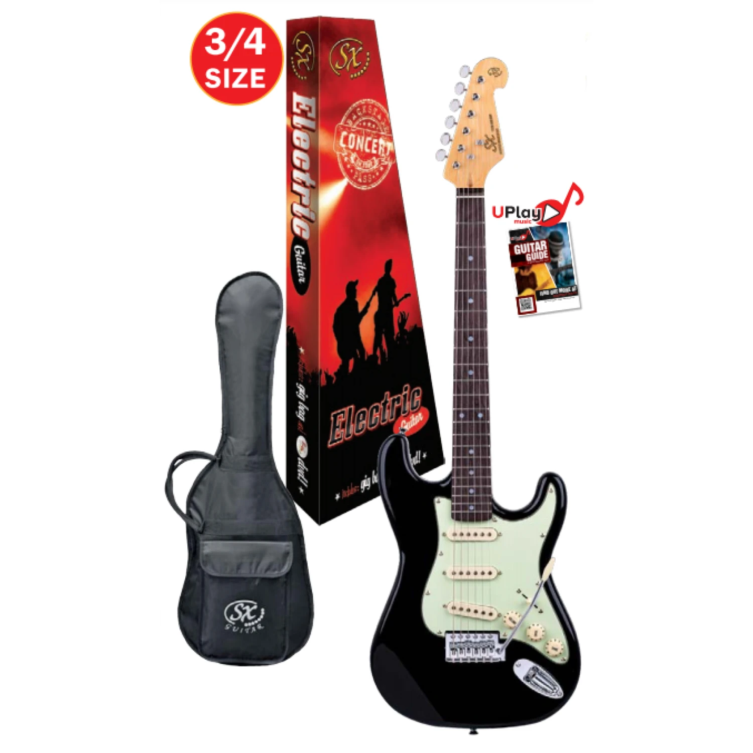 Supplied with SX padded gig bag and UPlay Guitar Guide with free online lessons.