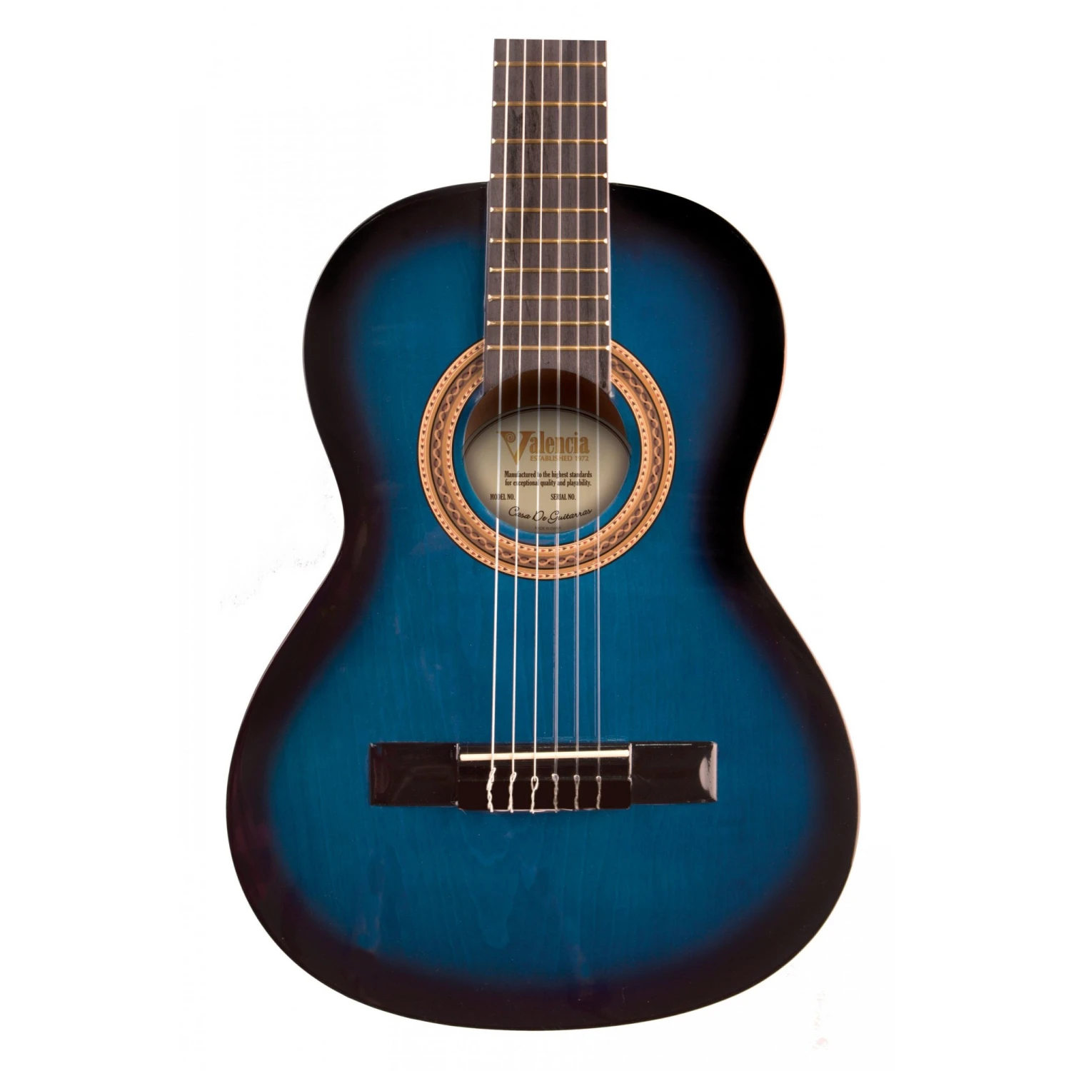 Valencia VC103BUS – 3/4 Size Classical Guitar – Gloss Blue Sunburst