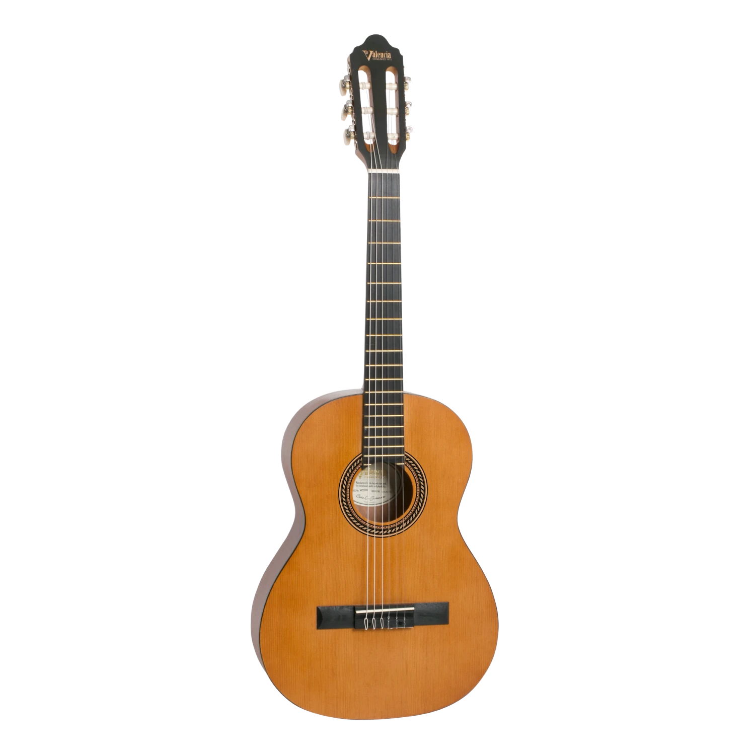 Valencia VC203H – 3/4 Size Classical Guitar – Hybrid, Thin Neck – Satin Natural