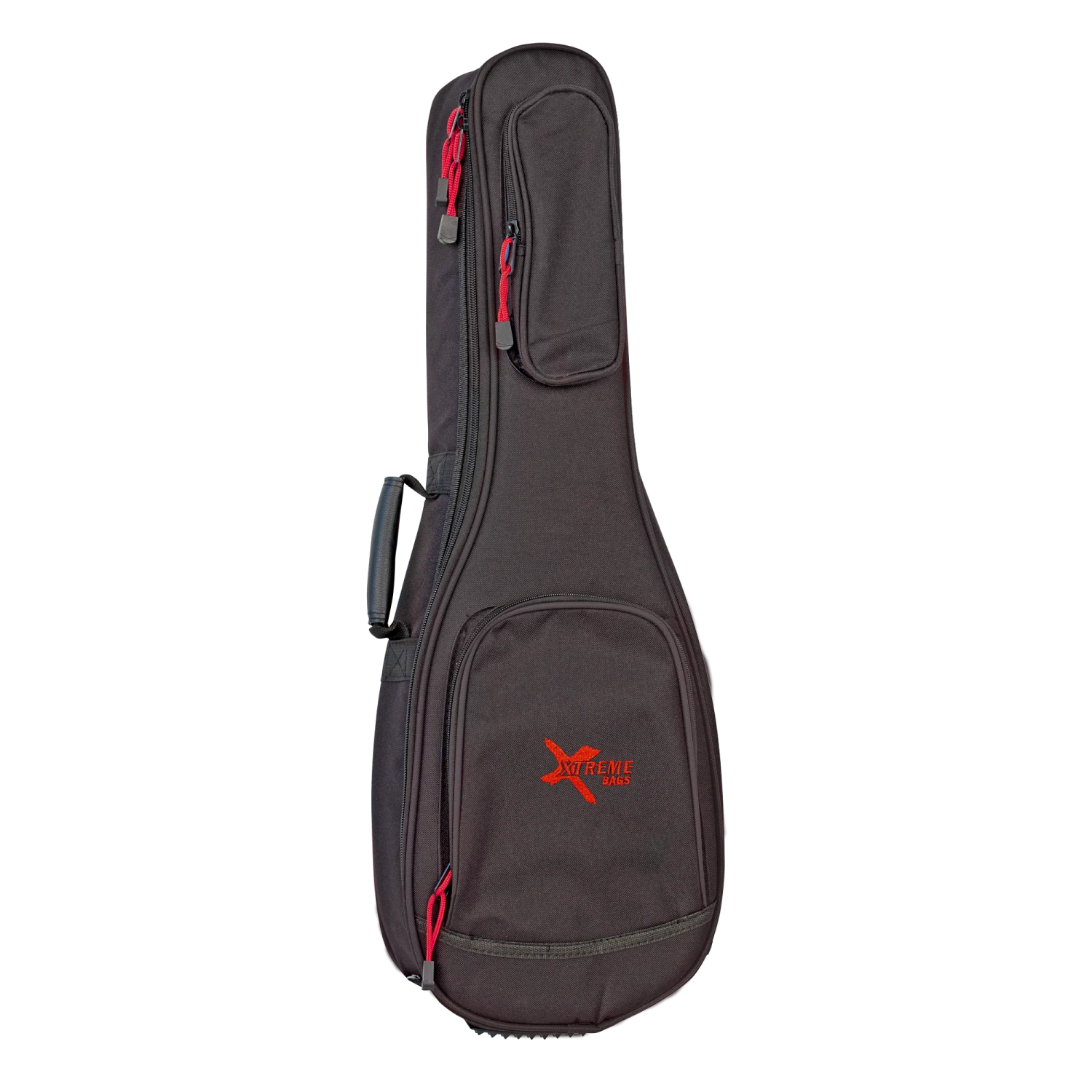 Black heavy duty nylon waterproof yarn. Reinforced interior lining with 10mm foam protective padding. Full length heavy duty zip. 2 accessory pockets. Stitched in padded carry handle and 2 adjustable padded shoulder straps. Toggles to all zips. Embroidered Xtreme logo.