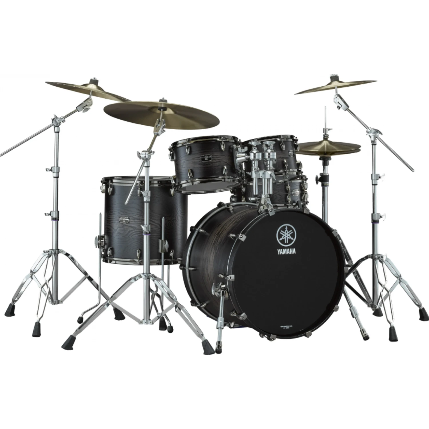 Yamaha Live Custom Hybrid Oak 5 Piece Euro Size Drum Set with Hardware in Charcoal Sunburst.